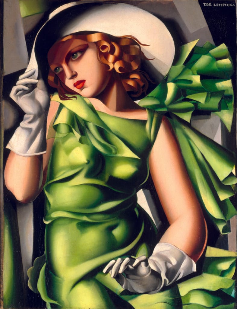 Le opere di Lempicka si distinguono per linee nette, volumi solidi e una palette di colori brillanti. I suoi ritratti, principalmente di donne dell’alta società e della bohème parigina, emanano sensualità, forza e indipendenza. Figure allungate, angoli acuti e superfici lucide come metallo caratterizzano il suo lavoro, perfettamente in linea con l’estetica Art Déco dell’epoca.