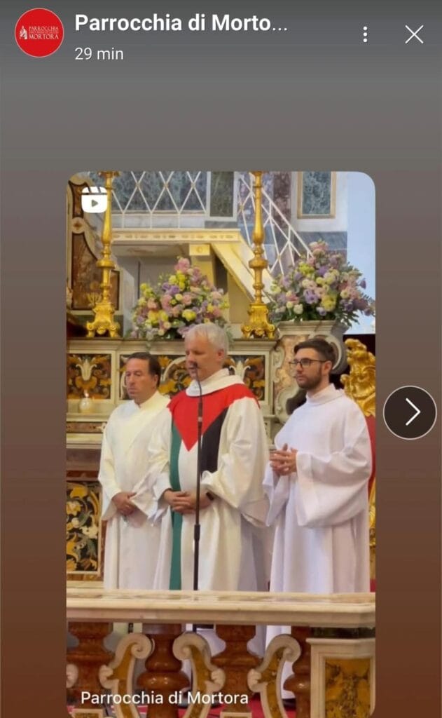 A Mortora la celebrazione del Corpus Domini non è passata inosservata, scrive Il Quotidiano di Napoli. Don Rito Maresca ha scelto di indossare per la messa una veste dai colori forti: rosso, verde, nero e bianco, quelli della bandiera palestinese.