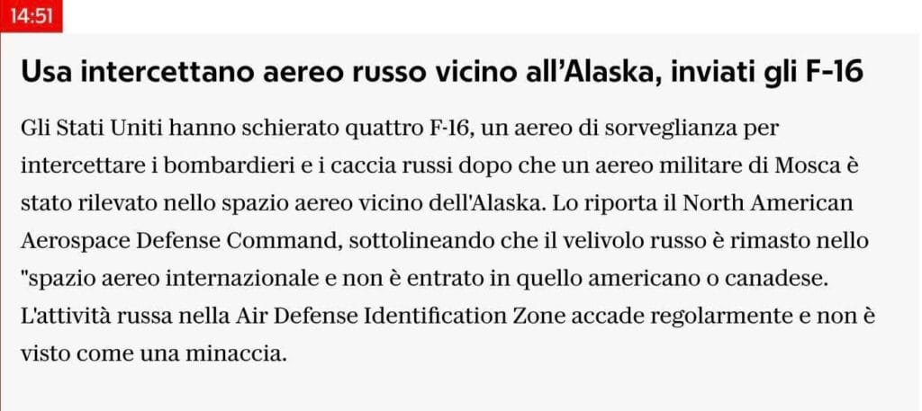 I droni avvistati in Danimarca non erano russi o non si hanno prove che lo fossero, il caccia russo è stato permanentemente in cieli internazionali, senza mai sconfinare in Canada o Stati Uniti d’America. E se lo dice anche la Repubblica… Solo che la smentita spesso ha lo stesso peso della notizia, se pubblicata, dell’archiviazione delle indagini per l’indagato…