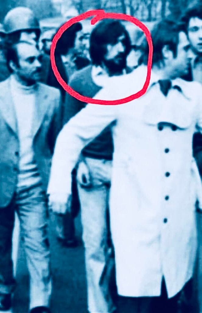 È suo lo slogan più urlato dai fascisti: «Boia chi molla».I fascisti non ci stanno. Si radunano nel pomeriggio davanti alla sezione dell’MSI in via Mancini e da lì partono verso piazza del Tricolore. Ci sono tutti i caporioni missini: Franco Maria Servello, “federale” di Milano; i deputati Franco Petronio e Ciccio Franco.Tra loro spicca anche la barba nera come la pece di un giovane Ignazio Benito La Russa (la foto sotto), allora segretario lombardo del Fronte della Gioventù. Con lui c’è anche il fratello Romano (oggi assessore alla Sicurezza della Regione Lombardia).