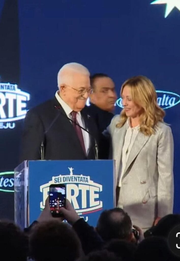 Non ho voglia di scrivere una riga in più su questo quadretto rivoltante.Per chi non l’avesse riconosciuto: lui è Abu Mazen. Lei è la complice dei nazi-sionisti.