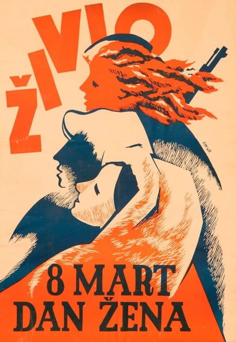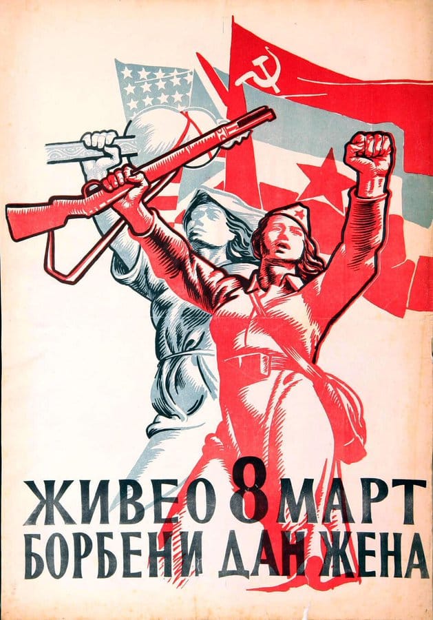 Il secondo recita “Lunga vita all’8 marzo, Giornata della donna” ed è stato disegnato da Edo Murtić, pubblicato probabilmente all’inizio degli anni ’50. Questo secondo manifesto diventò iconico durante la storia della RFSJ. Murtić disegnò alcuni manifesti durante la guerra, uno dei quali recita “L’Armata Rossa è arrivata”.