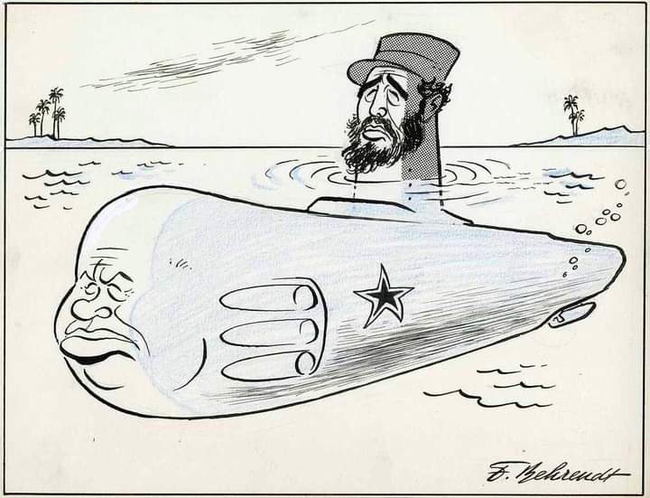 L’ appuntamento settimanale con “Propagandopolis” propone oggi una vignetta olandese pubblicata durante la crisi missilistica cubana (1962) che mostra il sottomarino Krusciov-Castro in crociera nei Caraibi.