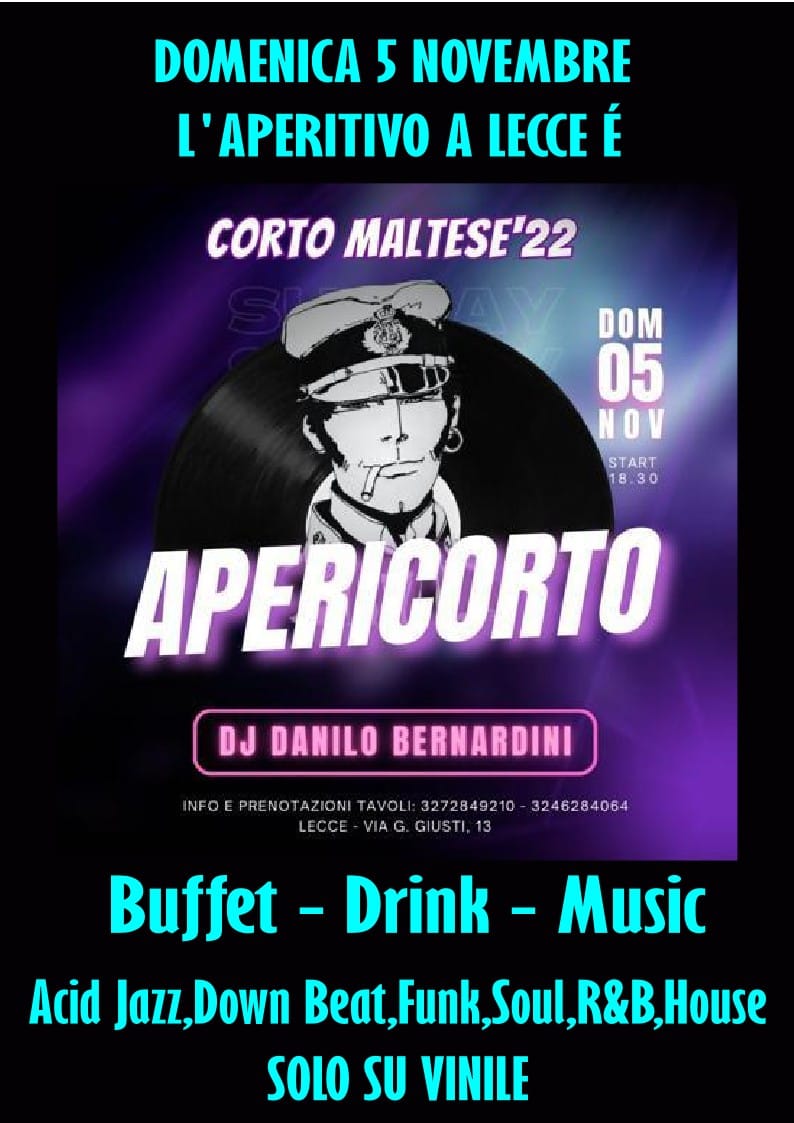 Il giusto mix di musica rigorosamente da vinile e di aperitivi stasera al Corto Maltese ’22 di Lecce, in via G. Giusti, 13.