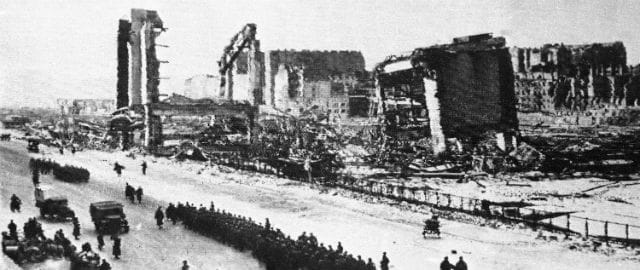 L’Armata Rossa lanciò l’offensiva Oder-Vistula e arrivò a Varsavia dopo cinque giorni di combattimenti il 17 gennaio 1945, trovando una terra desolata. Una bellissima città vecchia di oltre un millennio era stata cancellata. Il 30% della distruzione della città ormai praticamente rasa al suolo era avvenuta dopo la capitolazione polacca ai tedeschi, negli ultimi cinque mesi del 1944.