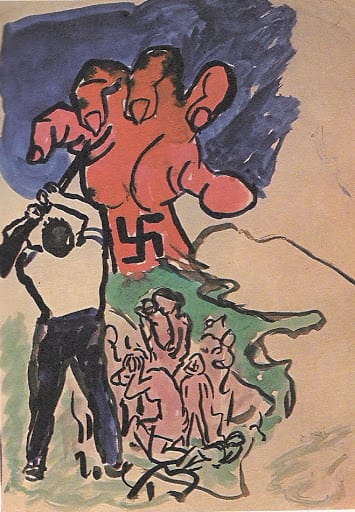 Guttuso dedica alla lotta partigiana un’ intera rassegna, dal nome Gott mit Uns (Dio è con noi), una serie di disegni e acquerelli realizzati nel biennio 1943-44 con inchiostri provenienti dalle tipografie clandestine. Il titolo rimanda al motto inciso sulla fibbia in acciaio delle uniformi dei soldati nazisti.